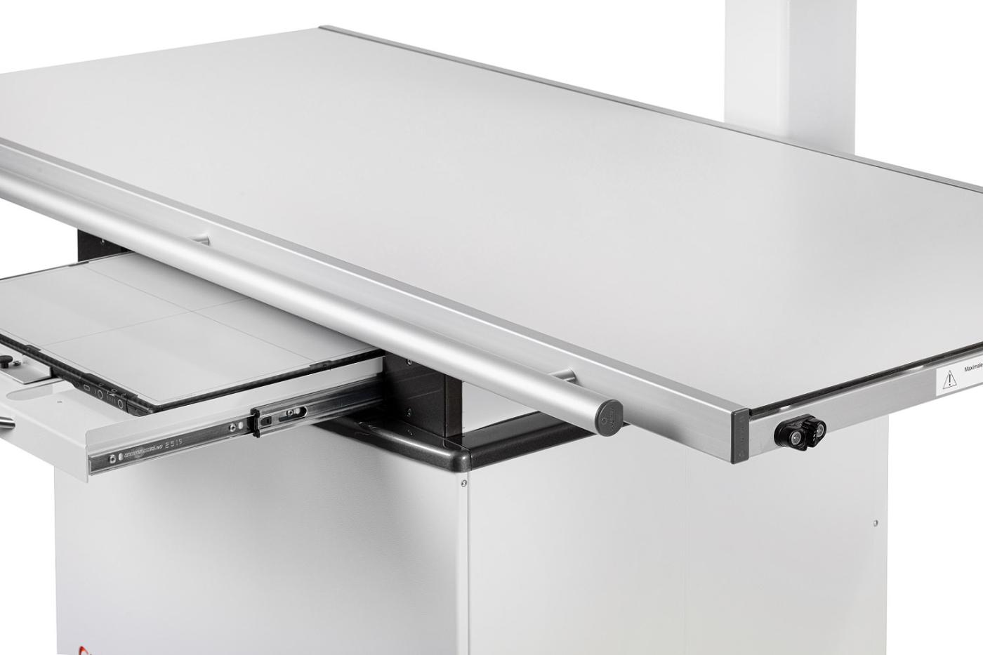 - Floating table top with wide vertical travel distance and low noise magnetic braking system